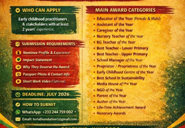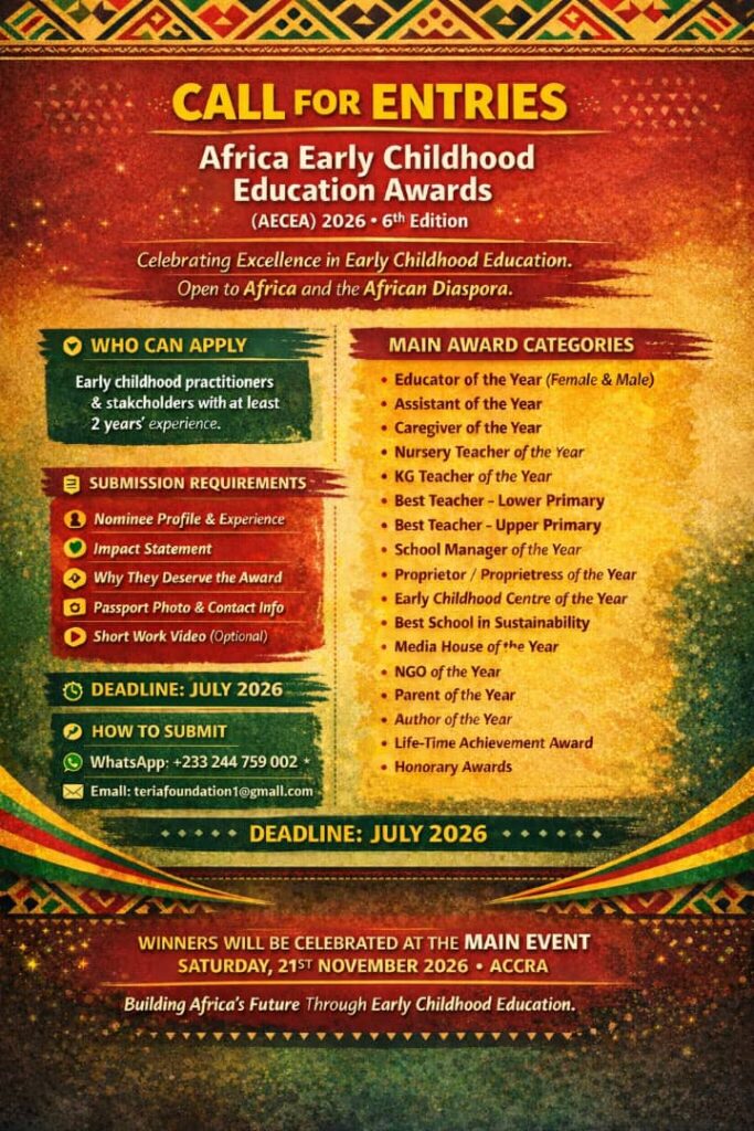 Accra, Ghana – January 8, 2026 — Organisers of the Africa Early Childhood Education Awards (AECEA) have...